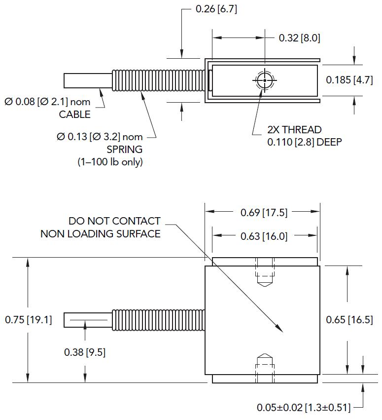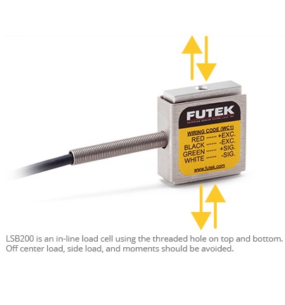 LSB200微S型拉壓力傳感器 FSH03875 45 N LSB200,45 N (10lb)量程,微S型拉壓力傳感器,RoHS認證,材質 - 2024-T4鋁合金,M3x0.5公制安裝螺孔,過載保護,#29 AWG 4芯編織屏蔽硅橡膠電纜,長度1.5米